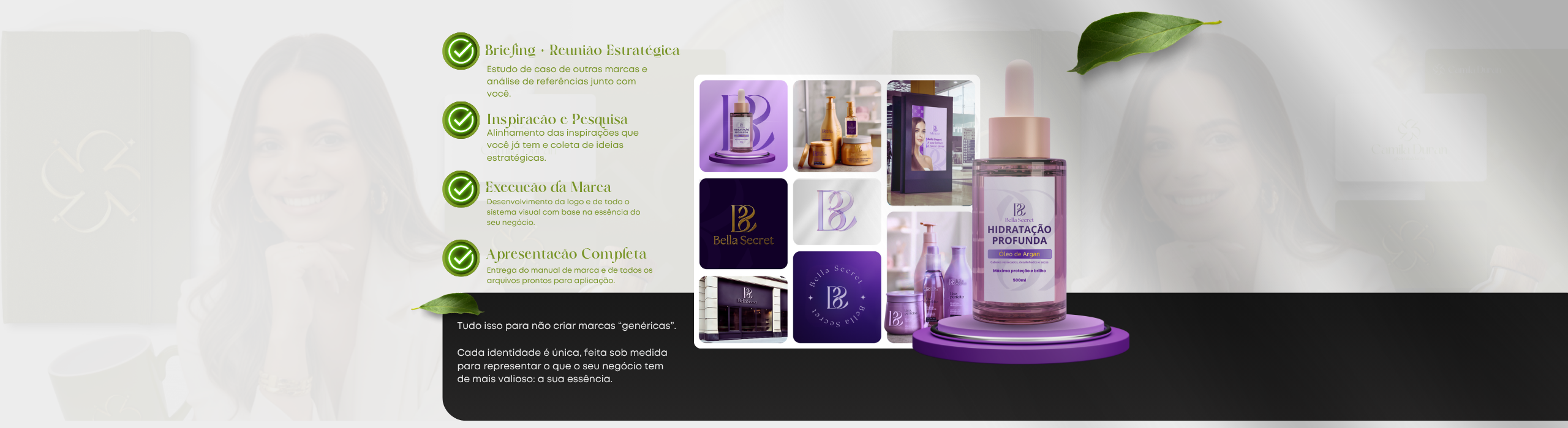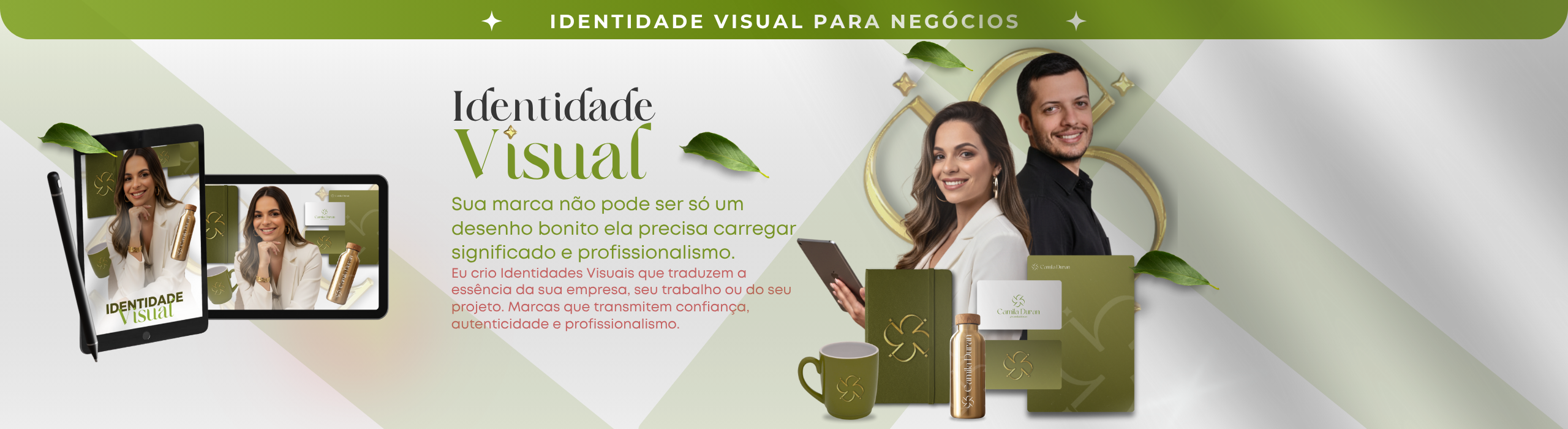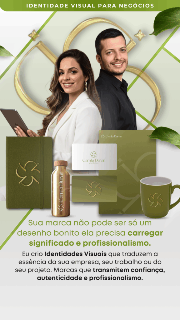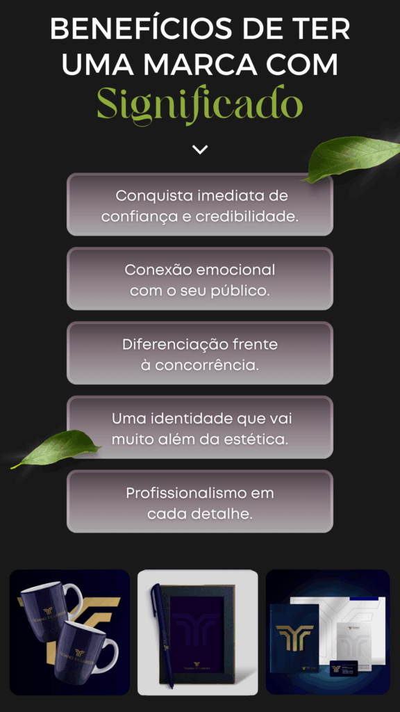 Não entregamos apenas um logo isolado. O trabalho é sempre um sistema completo de identidade visual, com significado e aplicabilidade real em diferentes pontos de contato da sua marca.